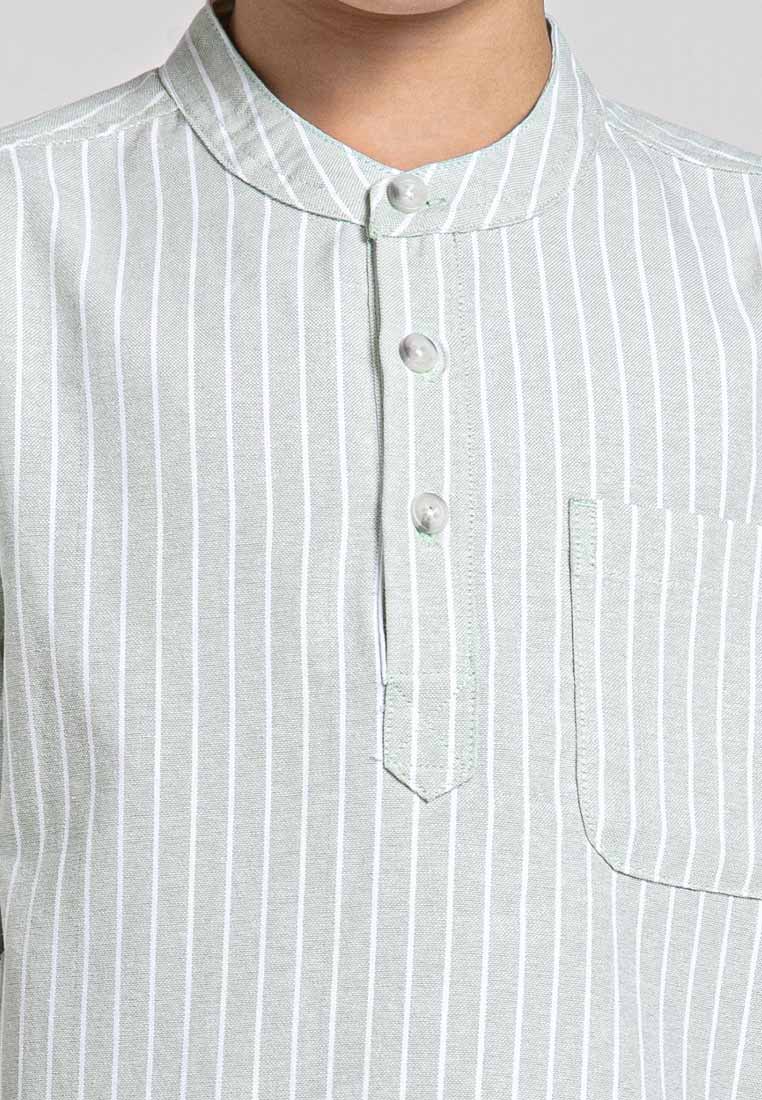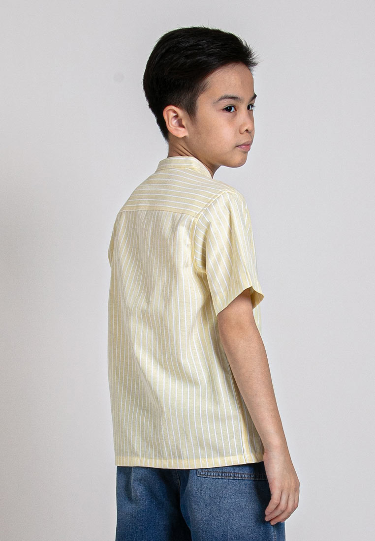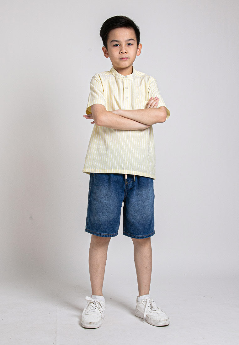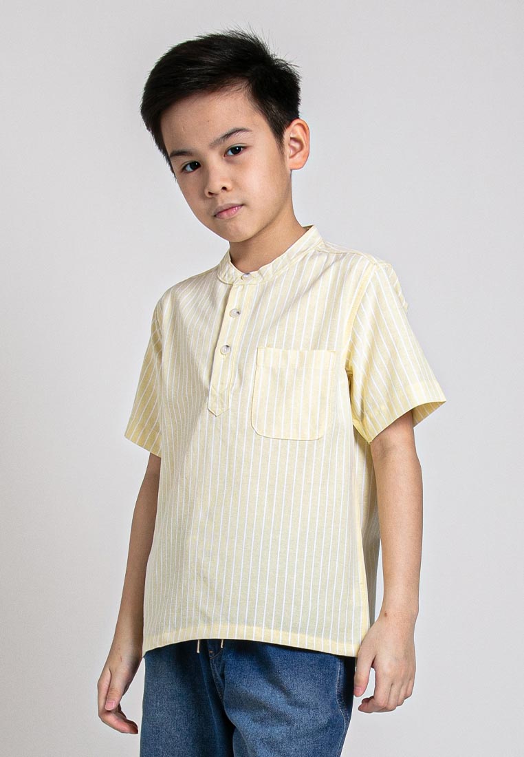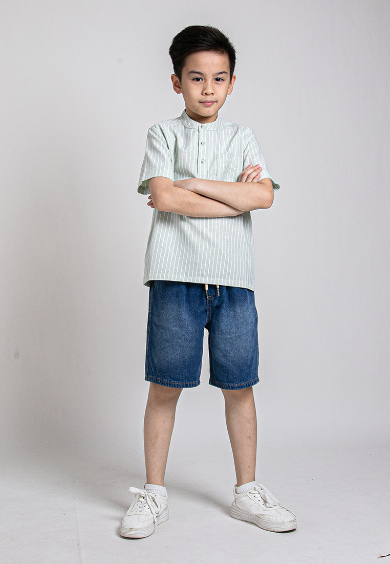 Forest Kids Boy Cotton Striped Stand Collar Short Sleeve Shirt | Baju Kemeja Budak Lelaki - FK20143