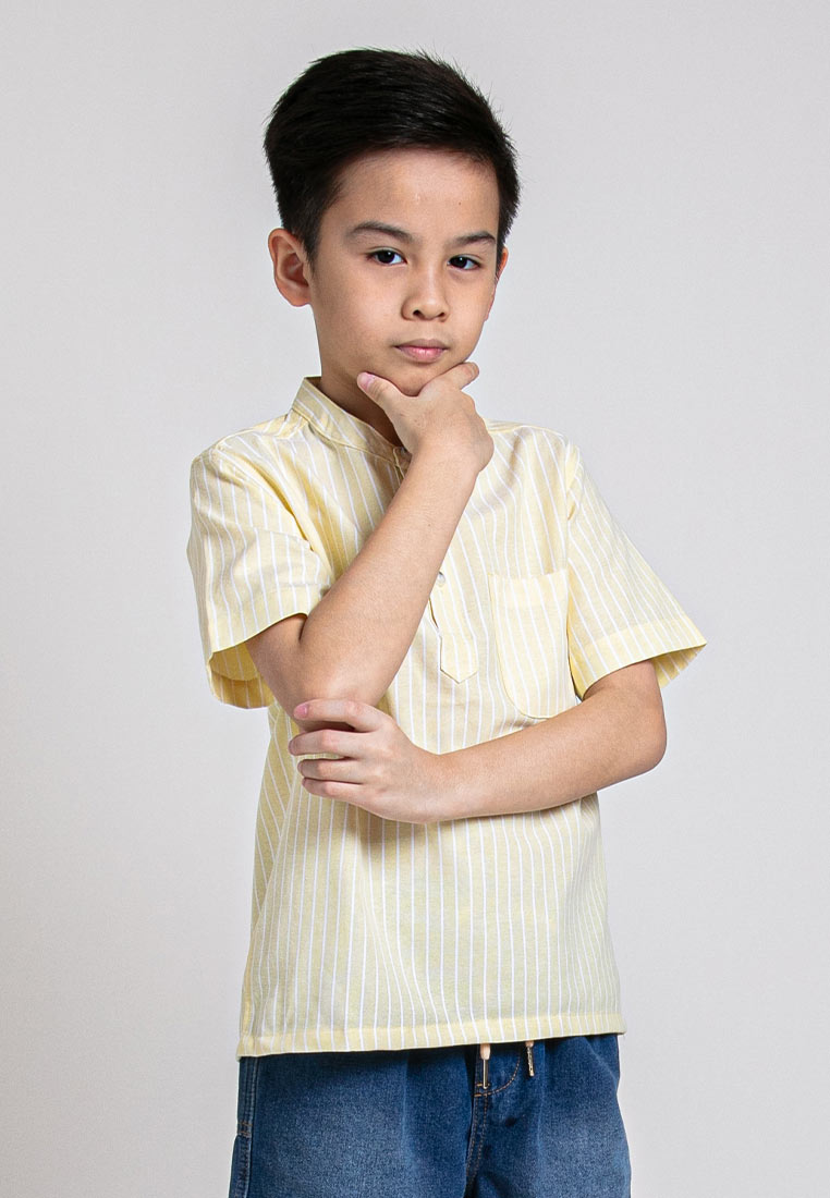 Pack Size : 1 x Forest Kids Boy Cotton Striped Stand Collar Short Sleeve Shirt | Baju Kemeja Budak Lelaki - FK20143