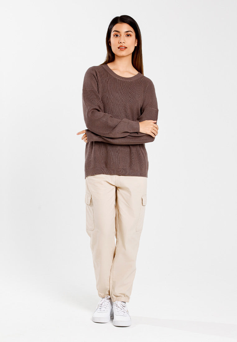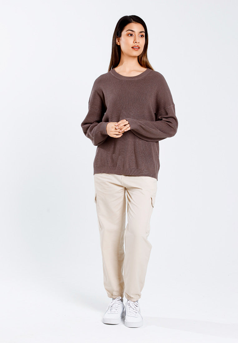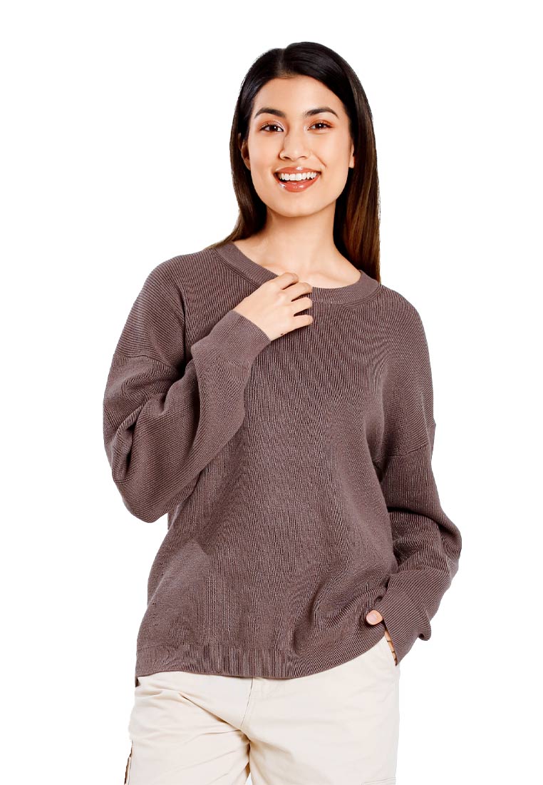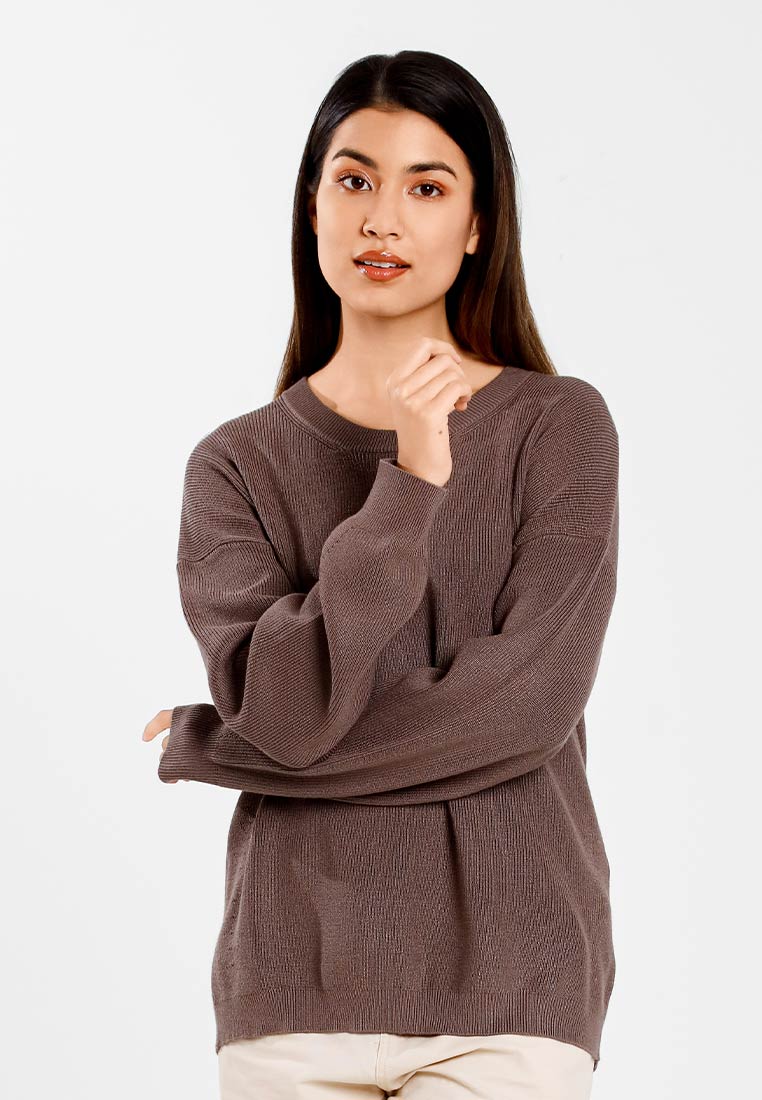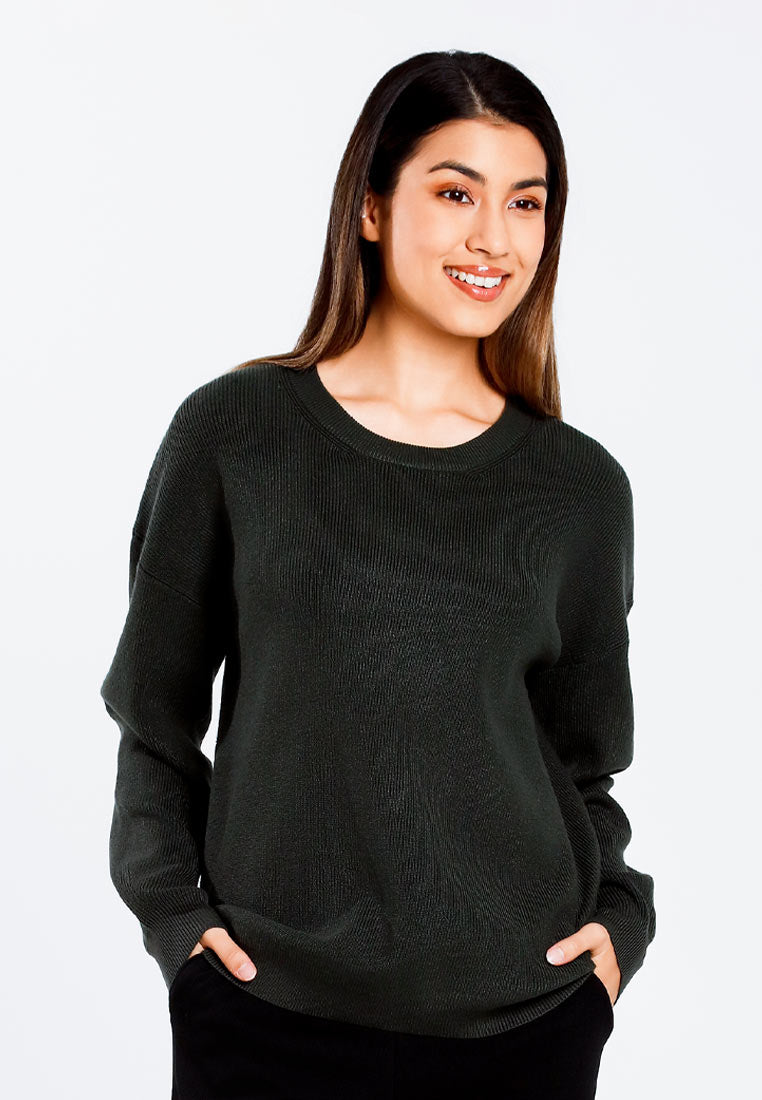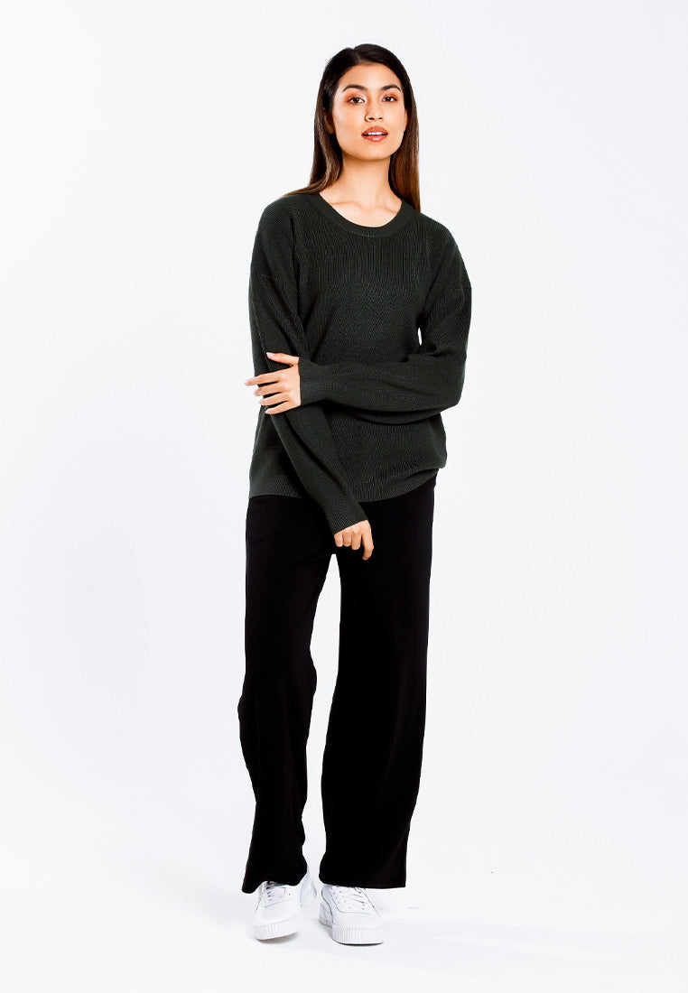 Forest Ladies Casual Oversized Round Neck Sweater Knit Top | Baju Lengan Panjang Perempuan - 822394