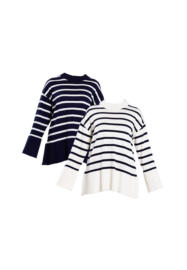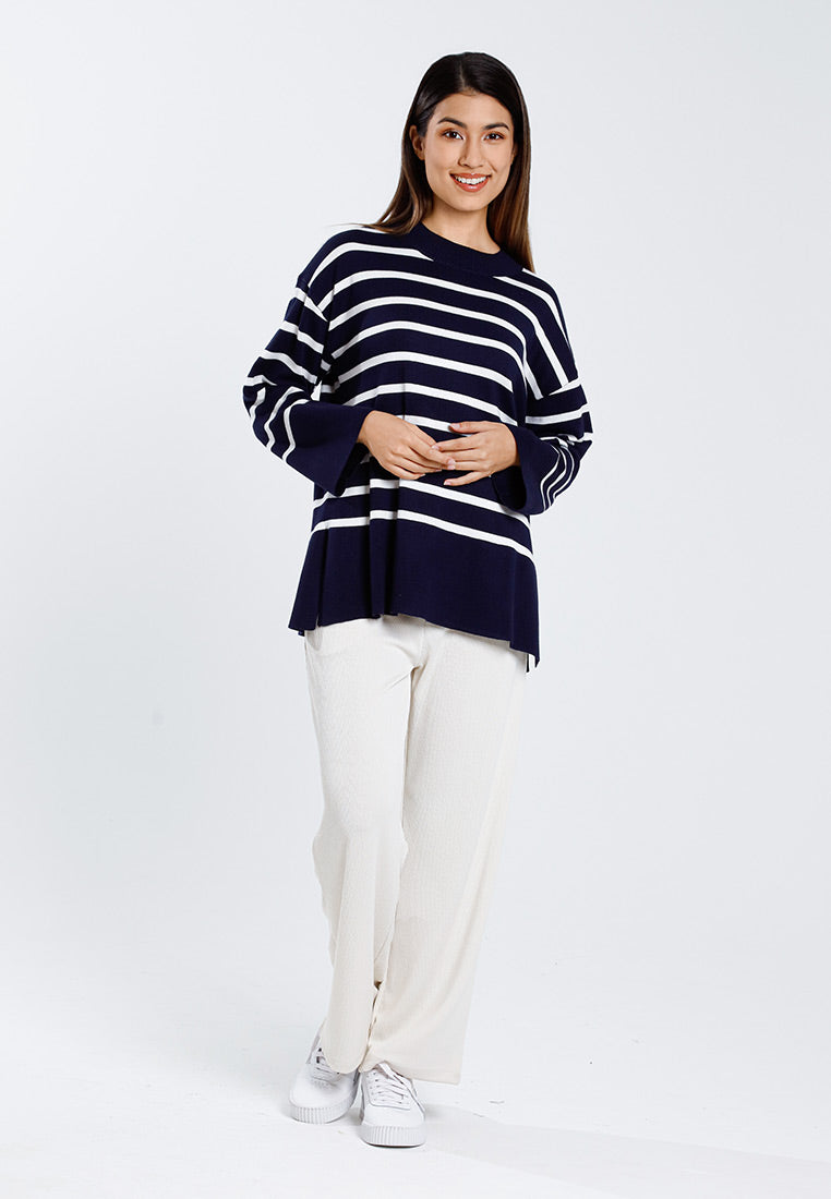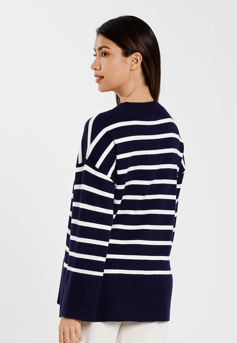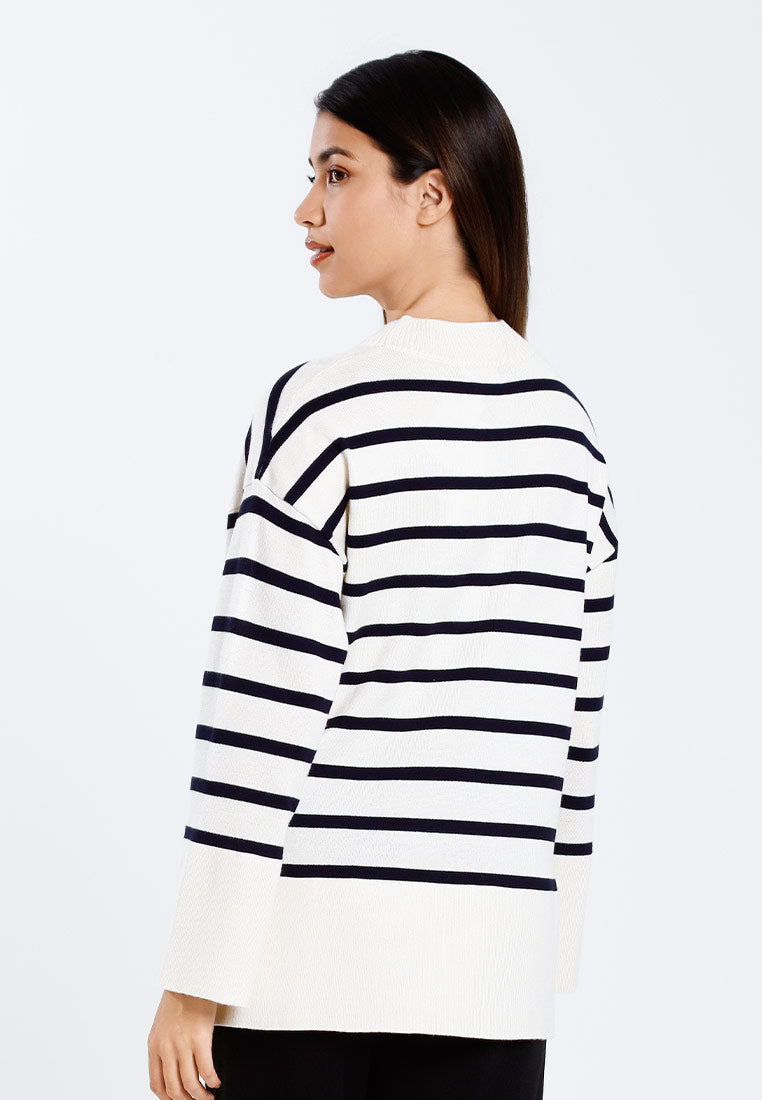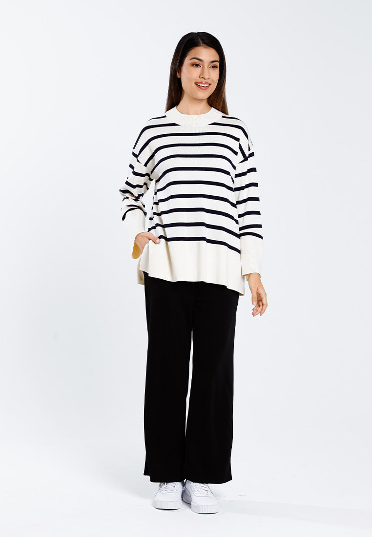 Forest Ladies Striped Knit Top Women Long Sleeve Knitted Sweater | Baju Perempuan Lengan Panjang - 822446