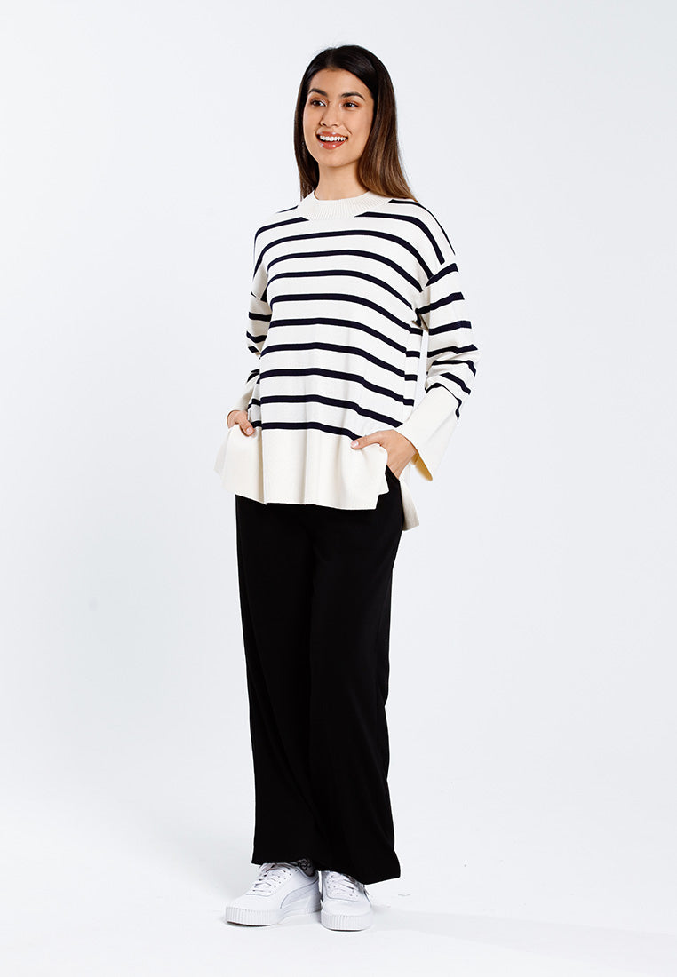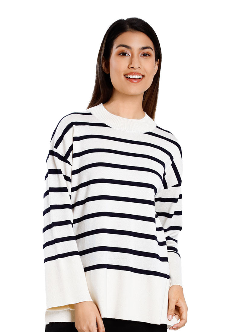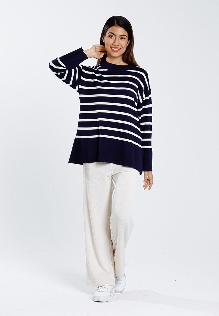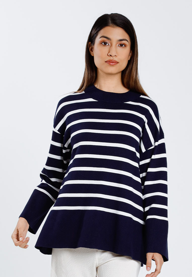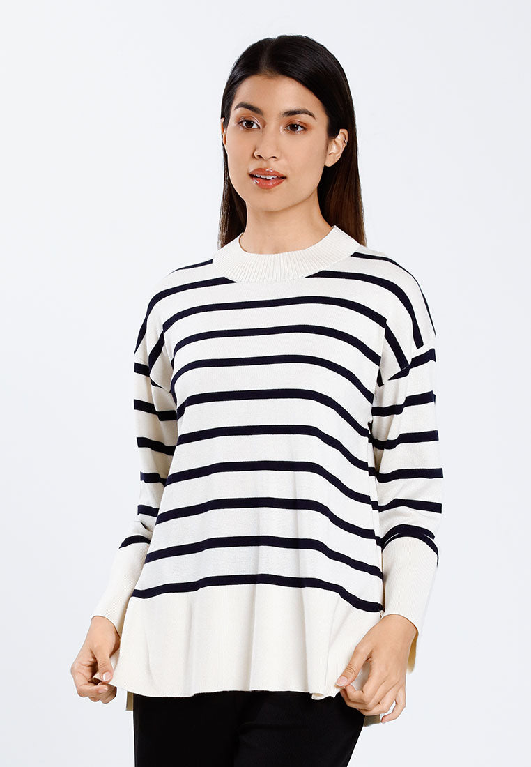 Forest Ladies Striped Knit Top Women Long Sleeve Knitted Sweater | Baju Perempuan Lengan Panjang - 822446