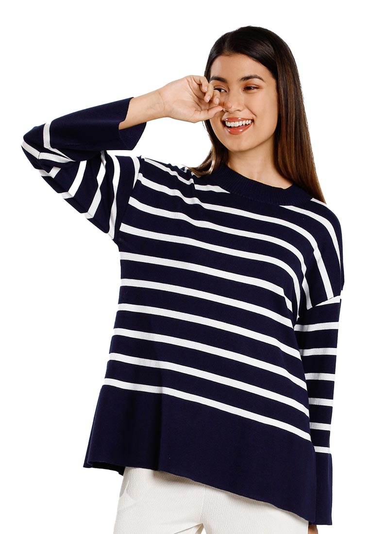 Pack Size: 1 x Forest Ladies Striped Knit Top Women Long Sleeve Knitted Sweater | Baju Perempuan Lengan Panjang - 822446